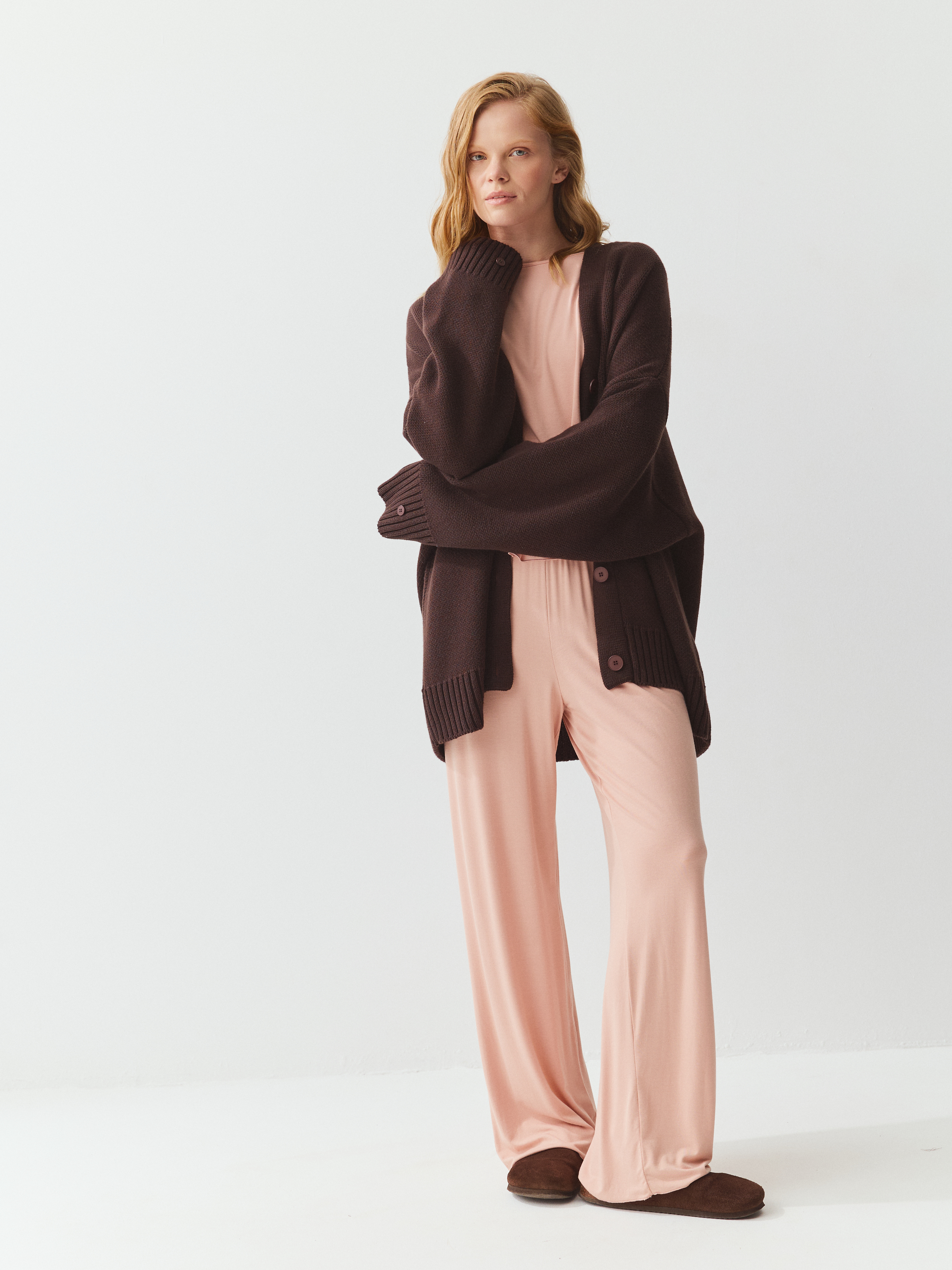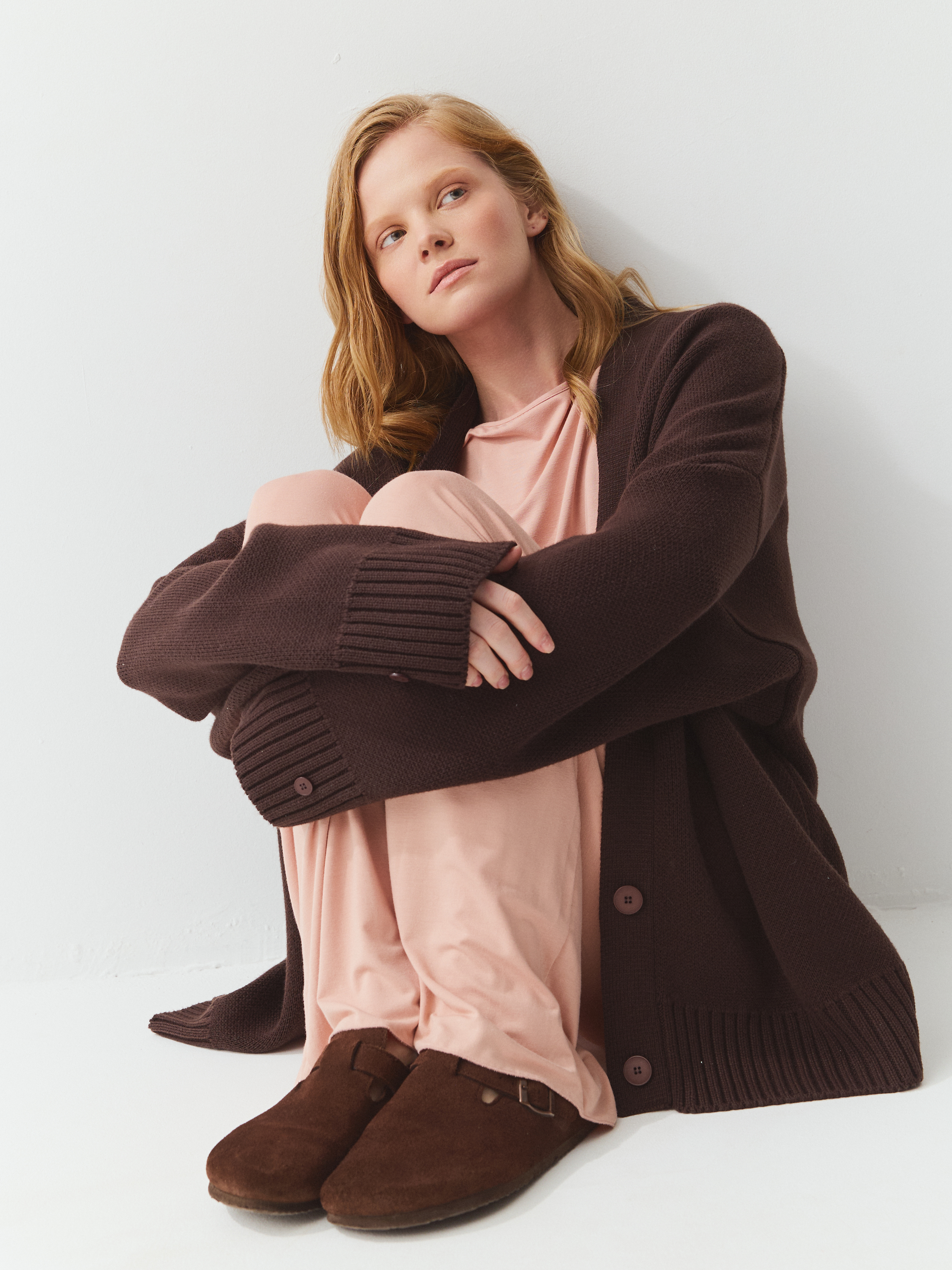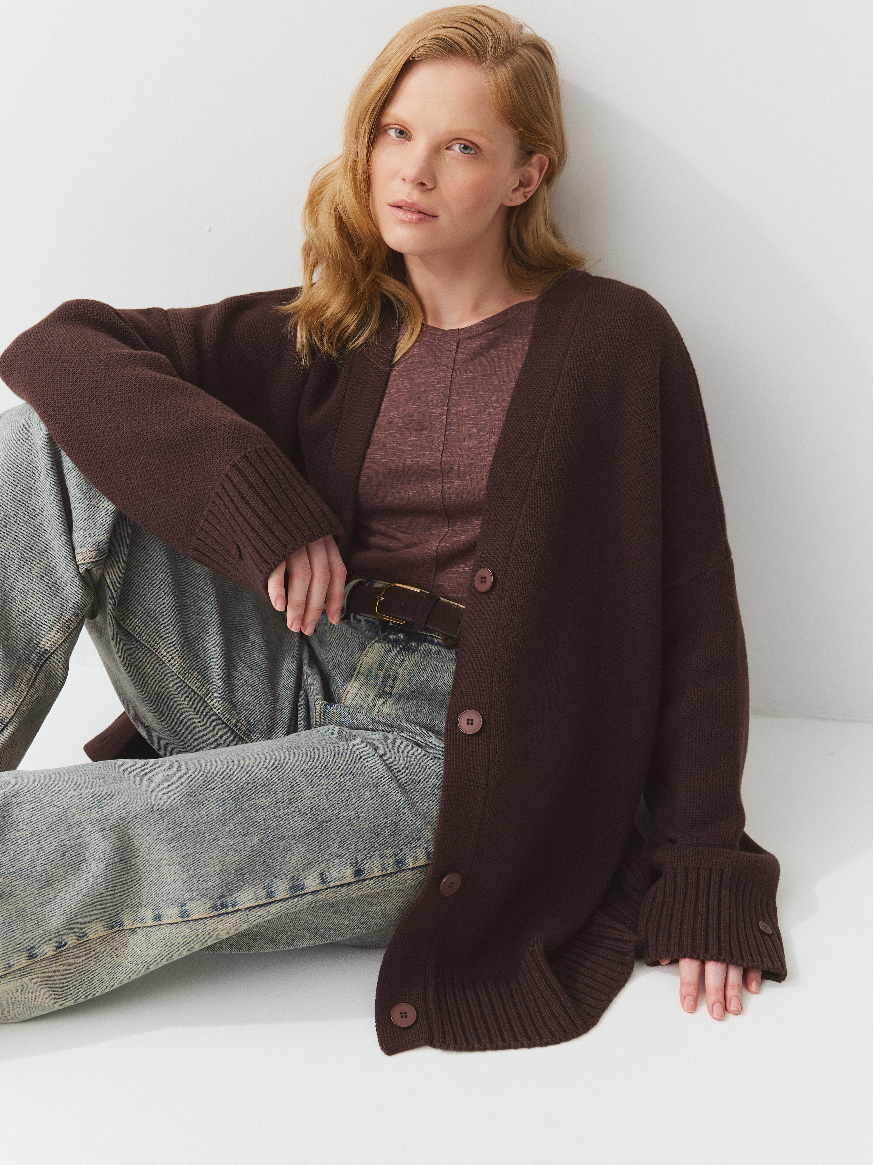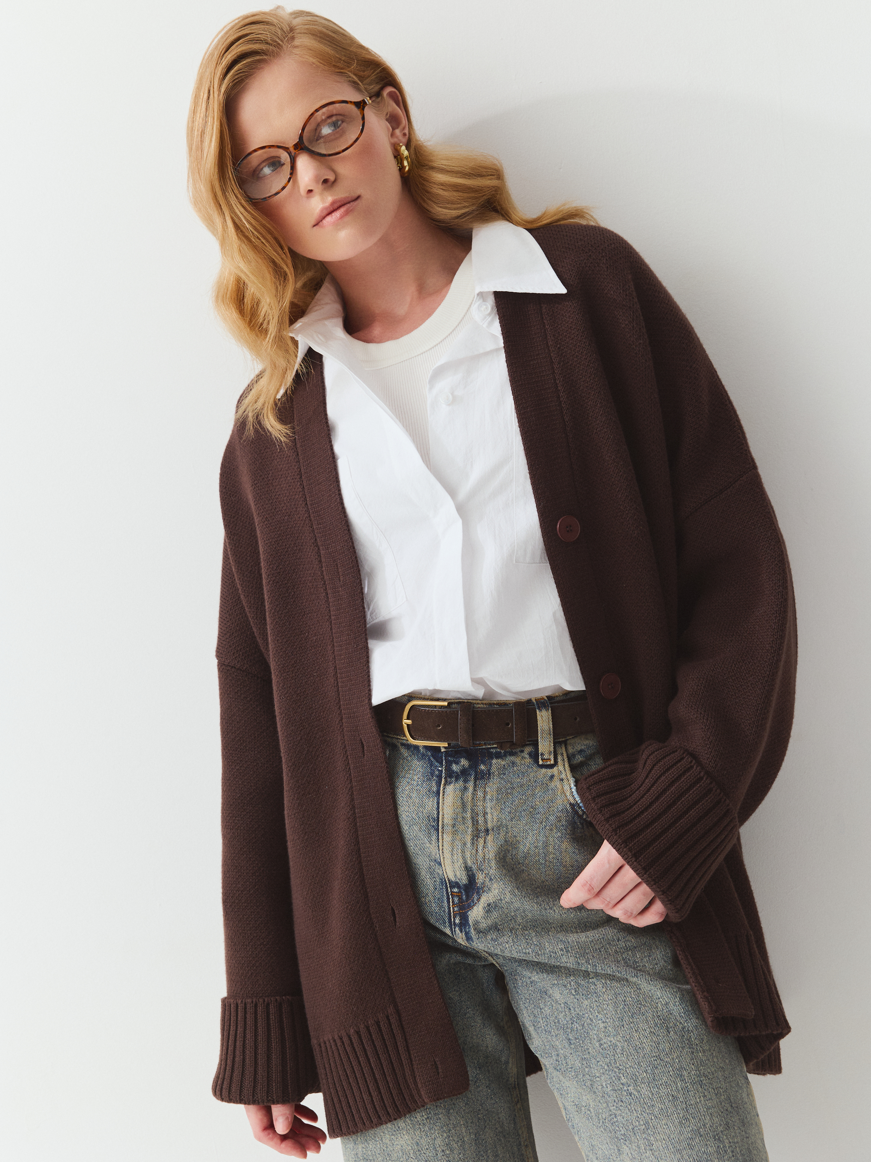Свободный кардиган прямого кроя - идеальный вариант для расслабленных образов.