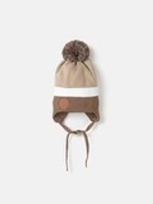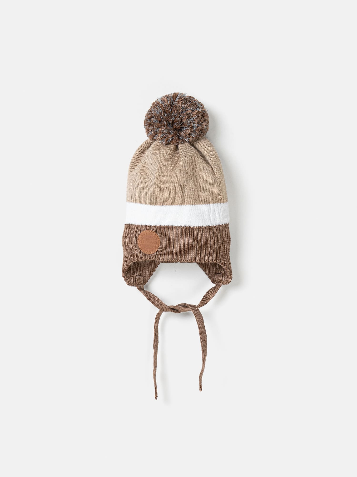 Зимняя шапка на завязках стиле колор-блок для комфортных прогулок.
