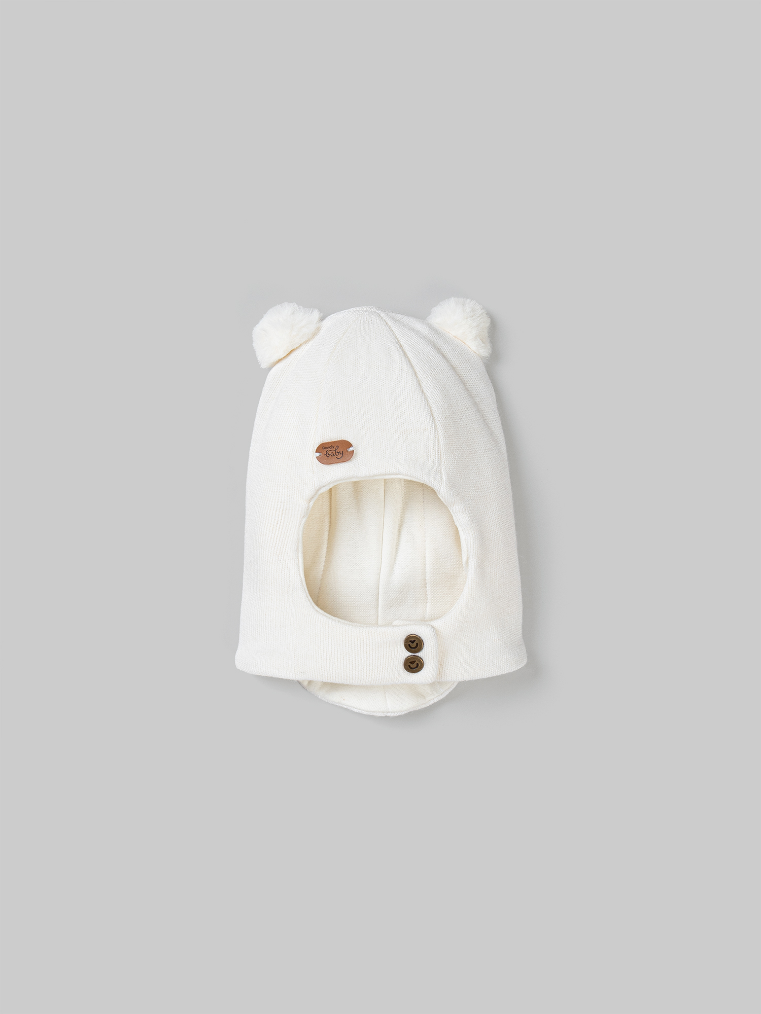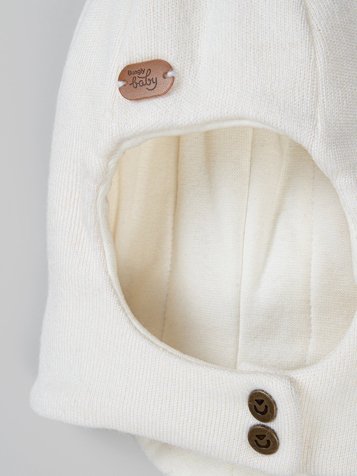 Застежка на кнопки, чтобы легко надеть и снять шапку, не потревожив малыша.